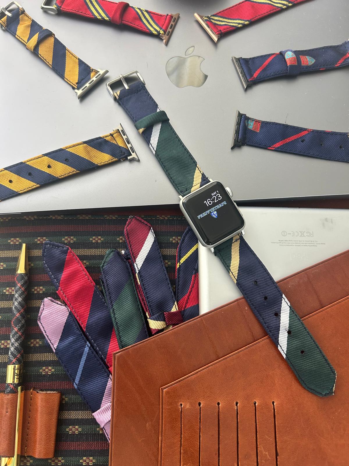 Introducing our ultimate preppy watch band: The Patchwork College tie straps. Different...